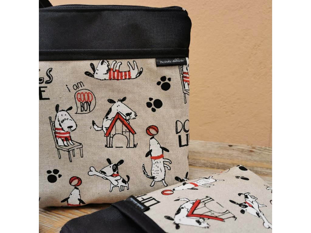 Športová crossbody taška. Podšitá pevnou bavlnenou látkou. S predným vreckom. Telo tašky je z nepremokavého polyesteru, len predné vrecko je z režnej bavlny.