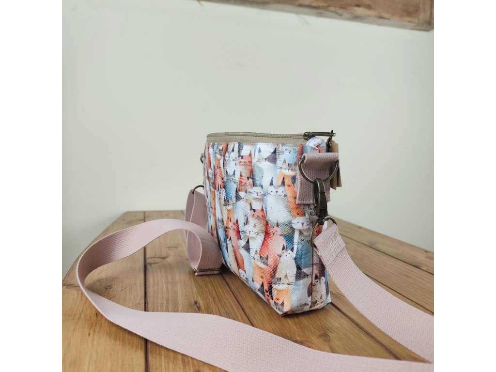 Kabelka - mačky s vymeniteľným marhulkovým popruhom