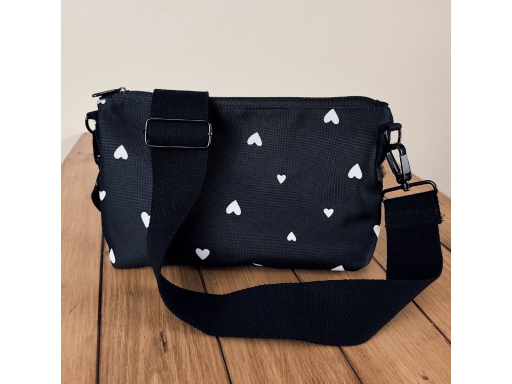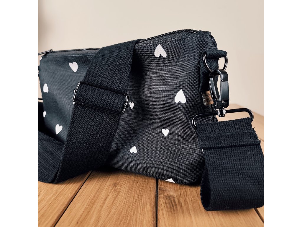 Kabelka so srdiečkami s čiernym vymeniteľným popruhom