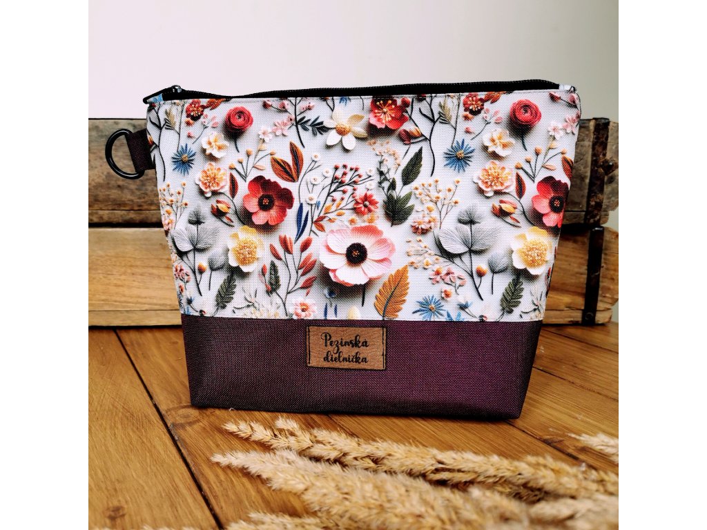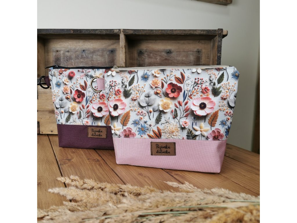 Kozmetická taška - jemné kvety s fialovou - veľká