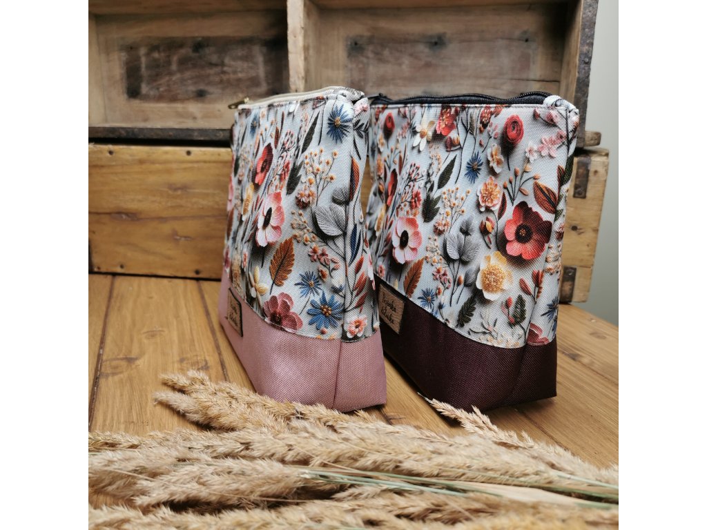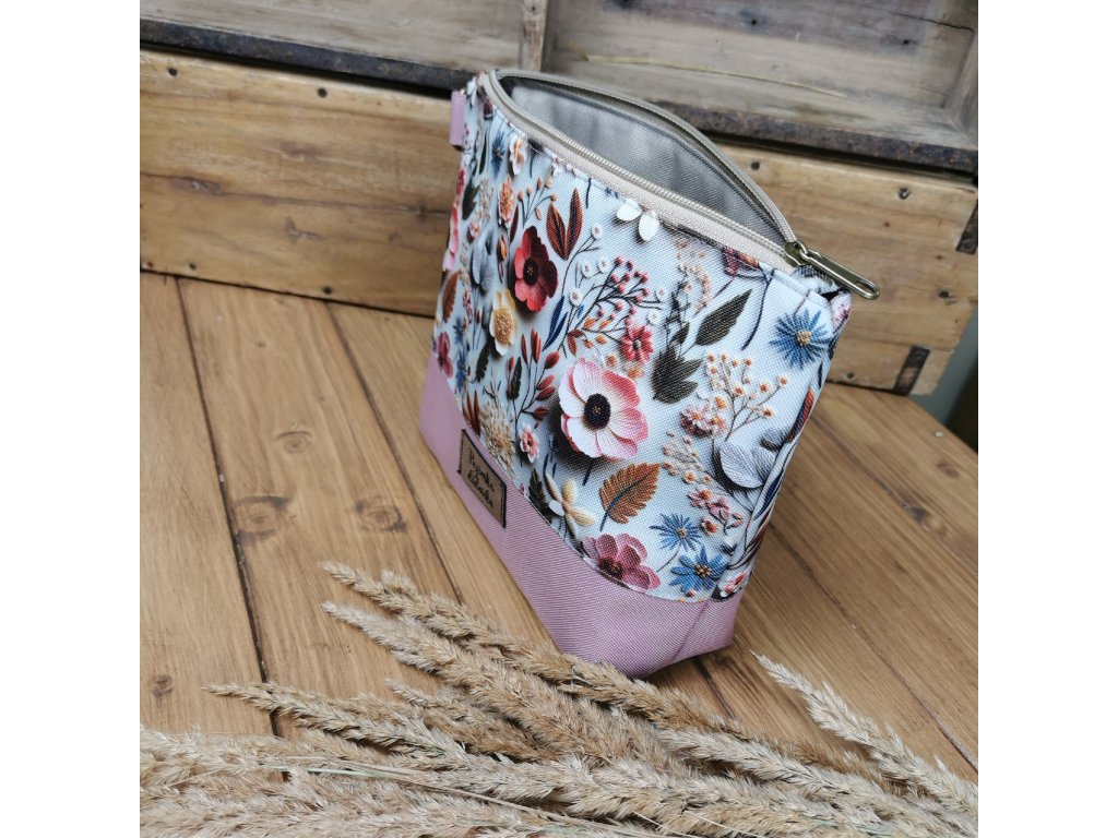 Kozmetická taška - jemné kvety s ružovou - stredná