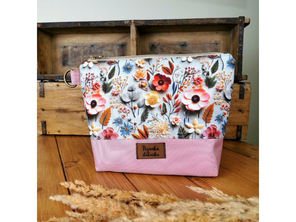 Kozmetická taška - jemné kvety s ružovou - veľká