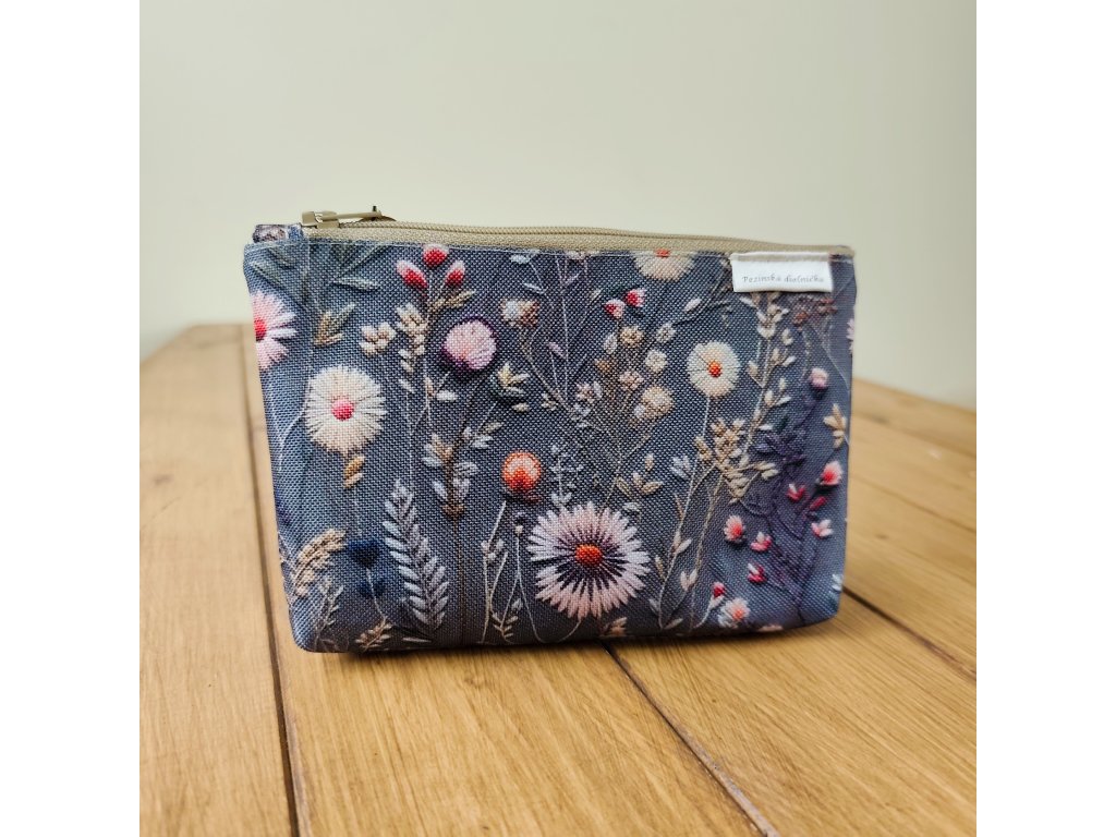 Kozmetická taštička - mini - kvietky na šedom