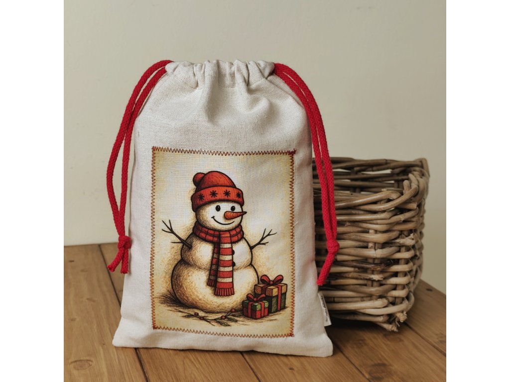 Mikulášske vrecko textilné - Snehuliak - na režnej