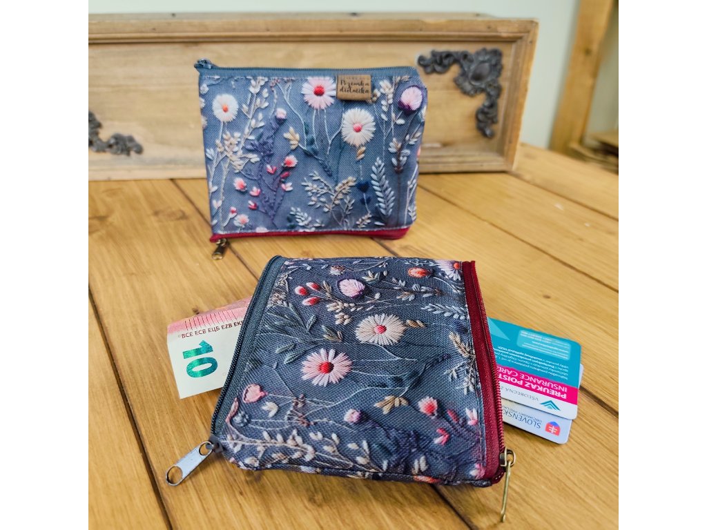 Peňaženka obojstranná Narnija - kvietky na šedom