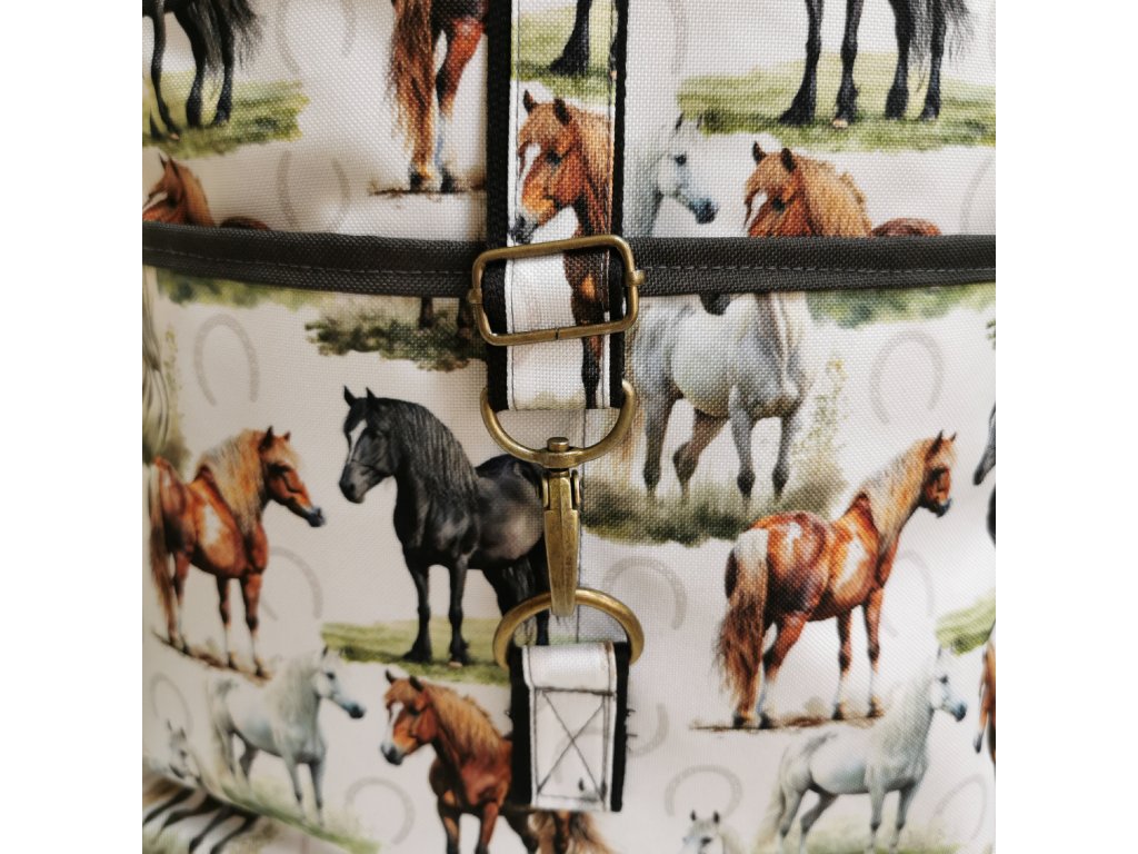 Praktický a nepremokavý batoh s rolovacím vrchom. Naplníte batoh podľa potreby, pracku na zapínanie prispôsobíte podľa naplneného batohu. Jedno vonkajšie vrecko na zips, jedno vnútorné vrecko na zips a 2 vonkajšie vrecká na fľaše. Batoh je z vnútra podšitý pevnou bavlnenou látkou.