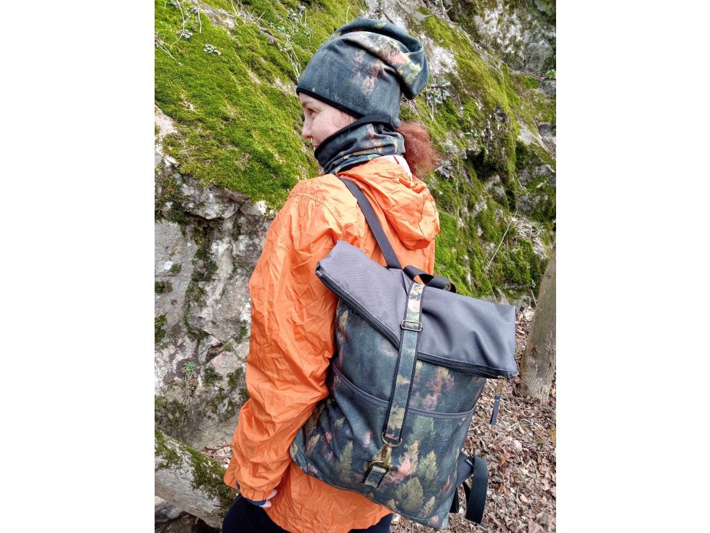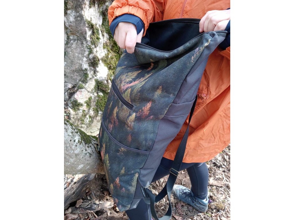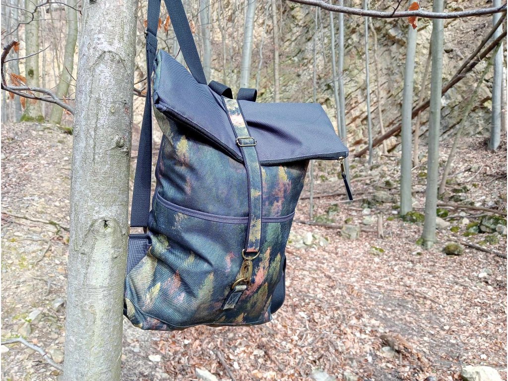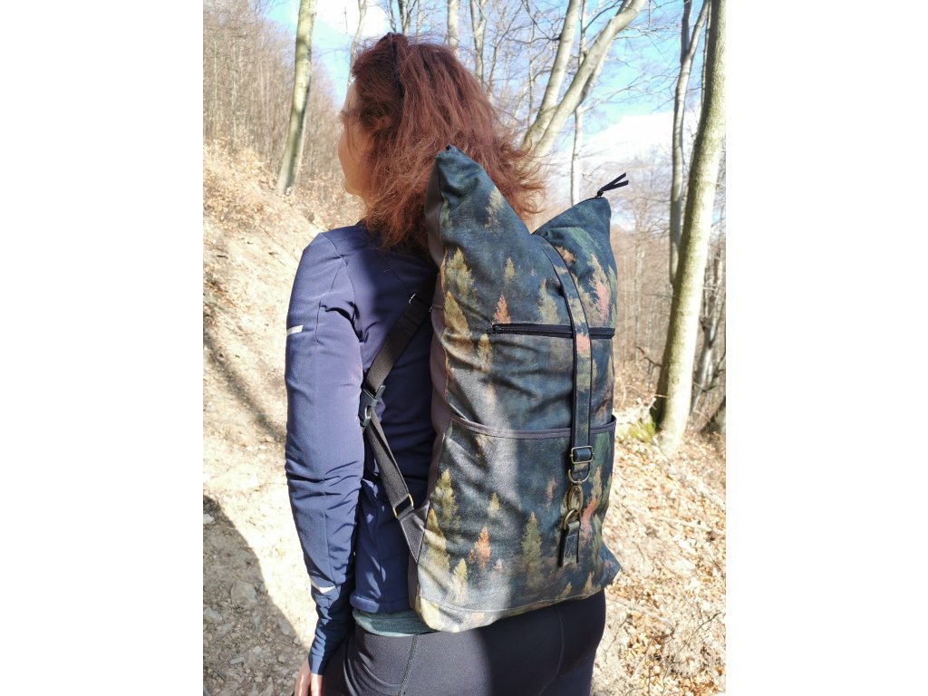 Praktický a nepremokavý batoh s rolovacím vrchom. Naplníte batoh podľa potreby, pracku na zapínanie prispôsobíte podľa naplneného batohu. Jedno vonkajšie vrecko na zips, jedno vnútorné vrecko na zips a 2 vonkajšie vrecká na fľaše. Batoh je z vnútra podšitý pevnou bavlnenou látkou.